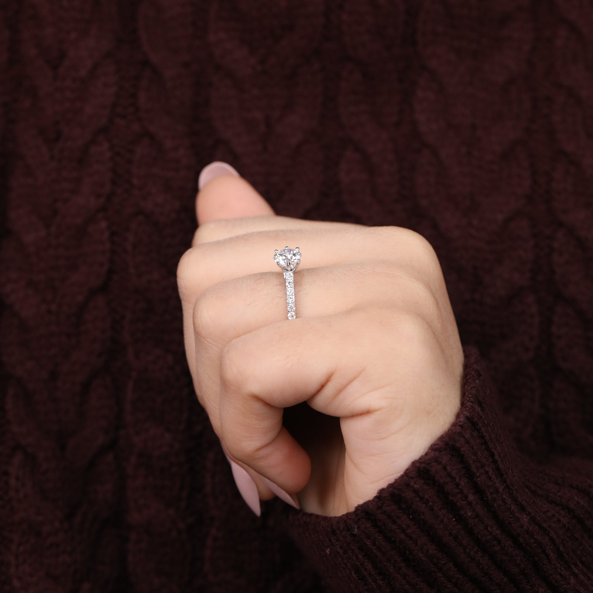 Elegant and timeless, this solid gold lab grown diamond ring radiates sophistication and brilliance. The dazzling round-cut center stone is perfectly complemented by a pavé set diamond band, creating a captivating sparkle from every angle. Ethically crafted with sustainable lab-grown diamonds, this ring symbolizes love, purity, and modern luxury. Ideal for engagements or anniversaries, it’s a breathtaking piece that blends classic design with contemporary values - made to last forever.